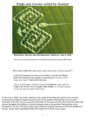Each wing of this July 4th crop circle has 21 parts forming it's spiral so the Eagle and Condor spirals united is 21 + 21 = 42. The number 42 relates to the Sixth Sun Tzolkin because that Tzolkin has exactly 42 symbols that form all of it's day signs.